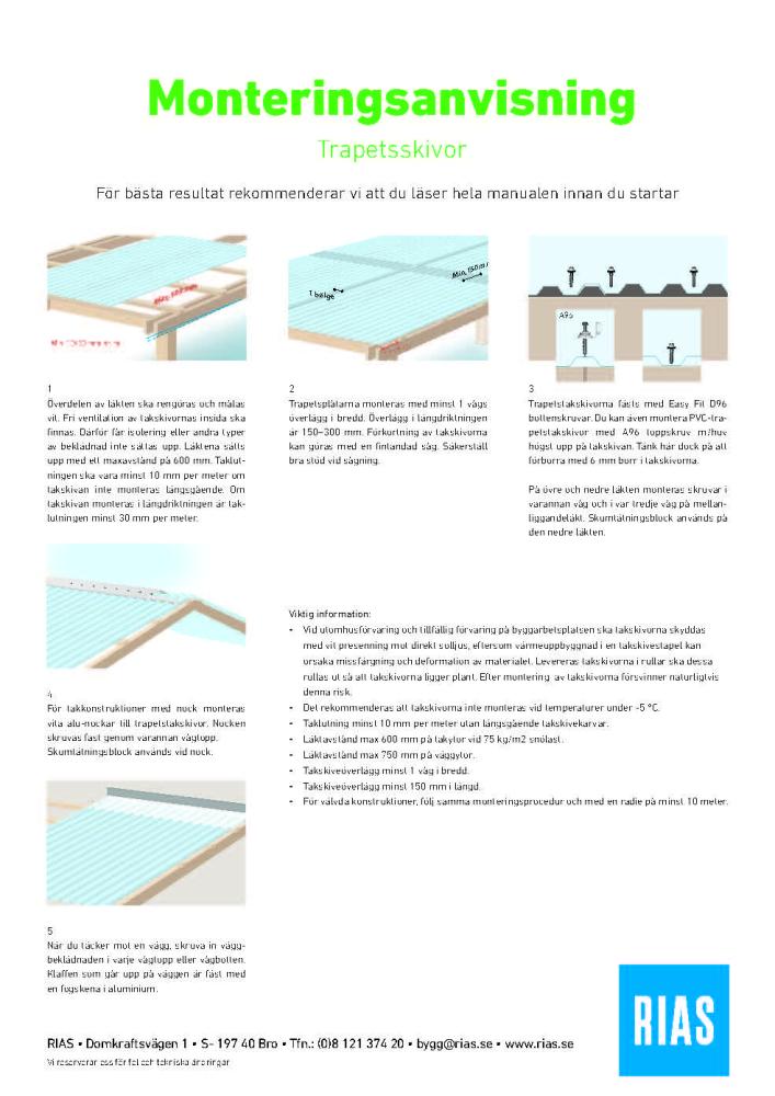 RODENA PVC skivor för ljusinsläpp - enkeltskikts