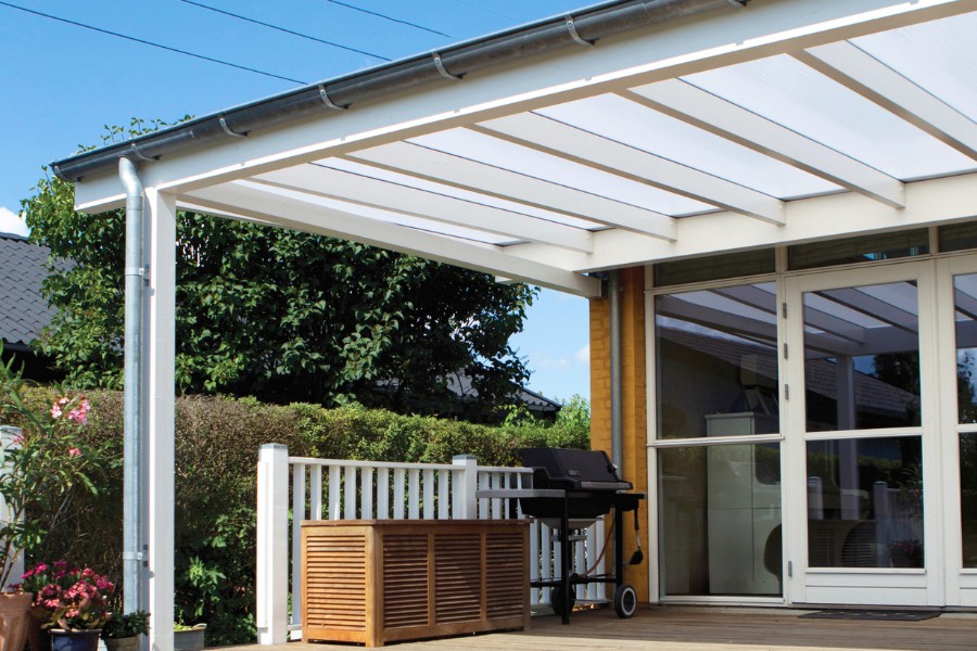 En överbyggd terrass skyddar mot regn och dagg när det blir kallt på kvällen. Finns även lä, kan terrassen användas från tidig vår till långt in på hösten, eventuellt med lite extra värme från en terrassvärmare. Trädgårdsmöblerna blir aldrig blöta och om grillen får sin fasta plats precis utanför, är lång grillsäsong garanterad. När du väljer kanalplasttak till din terrassöverbyggnad får du ett stöttåligt tak som minimerar risken för kondensdropp jämfört med enkellagersskivor. Vi har skivor i klar, opal och brons som kan ge det utseende och ljusinsläpp du drömmer om.